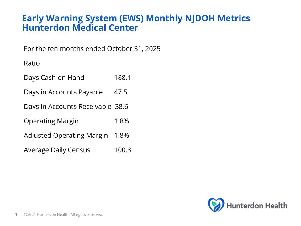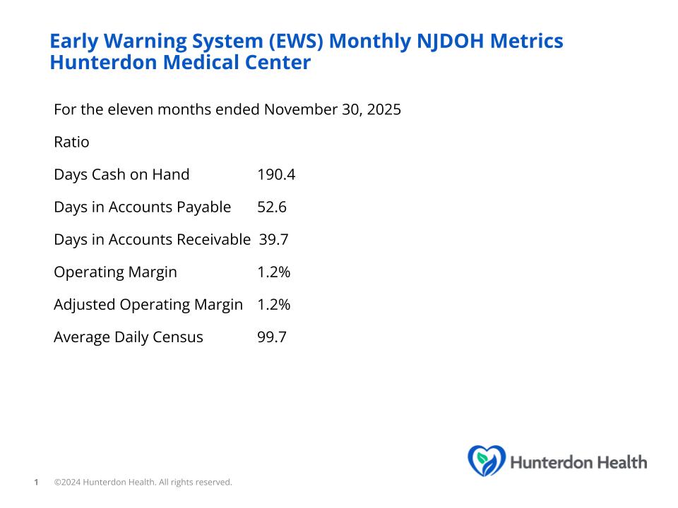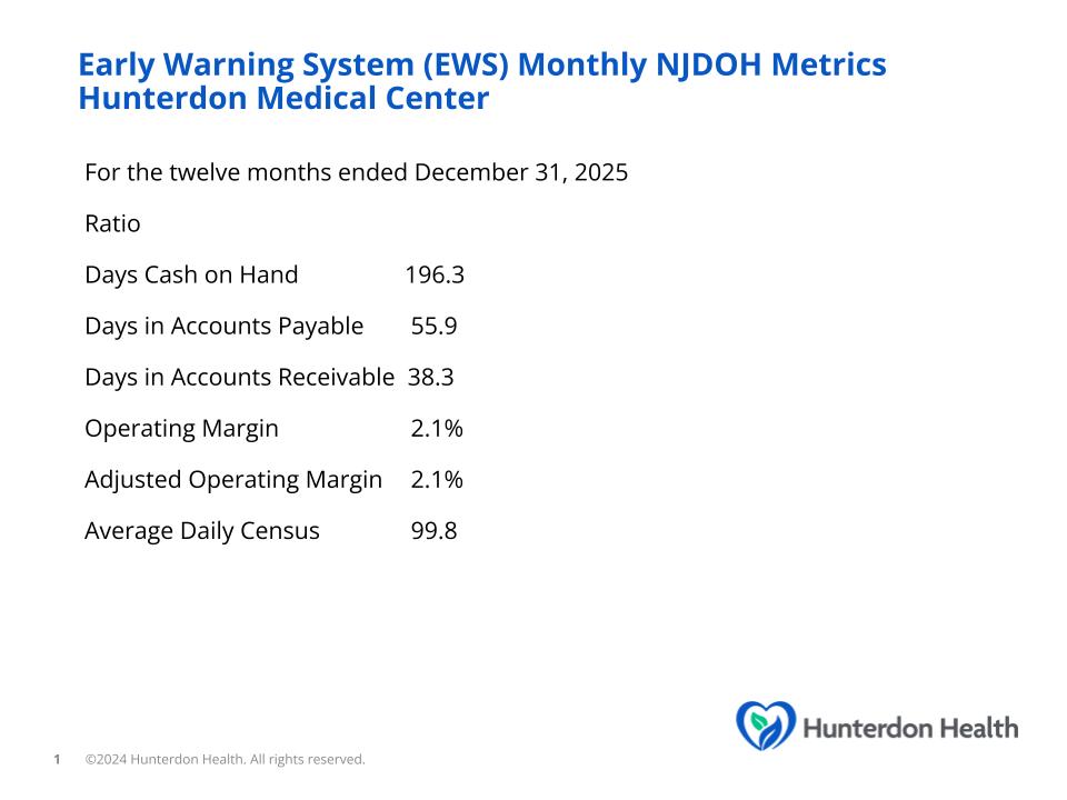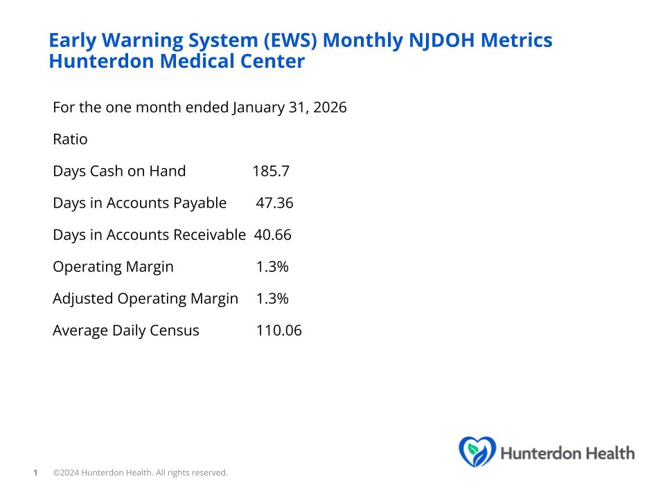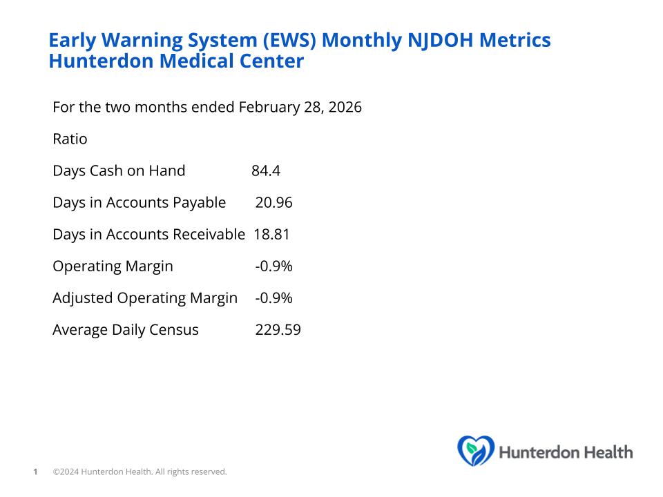 Hunterdon Healthcare System, also known as Hunterdon Health, is committed to transparency in financial reporting. Hunterdon Health posts information to the Electronic Municipal Market Access (EMMA) as part of its ongoing disclosure requirements related to outstanding debt. EMMA is a web-based information repository and resource that provides investors, state and local governments and other market participants with key information about municipal securities, free of charge.